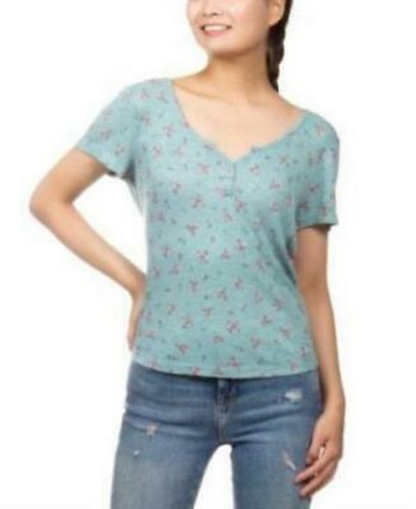 Hippie Rose Juniors Floral-Print Henley-Neck Top Juniors Juniors Clothing