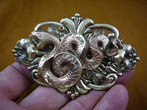 (B-SNAKE-102) Snake coiled wild snakes scrolled flower brass pin pendant brooch