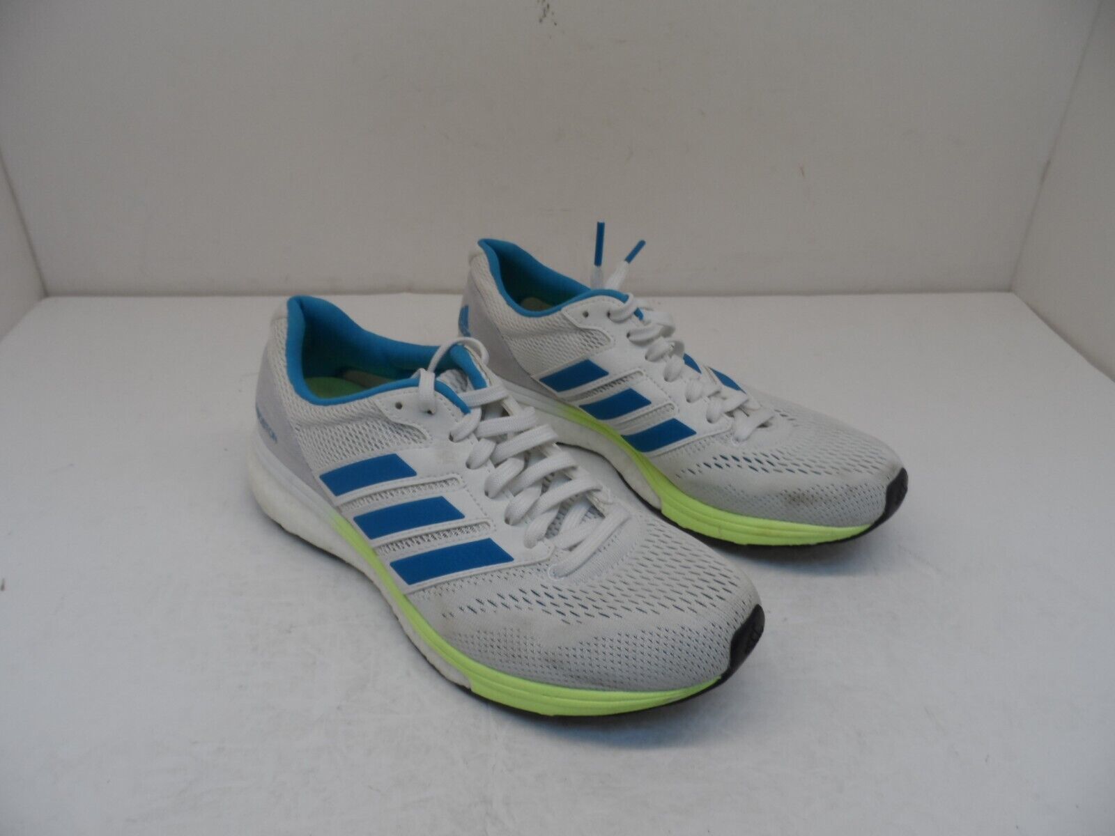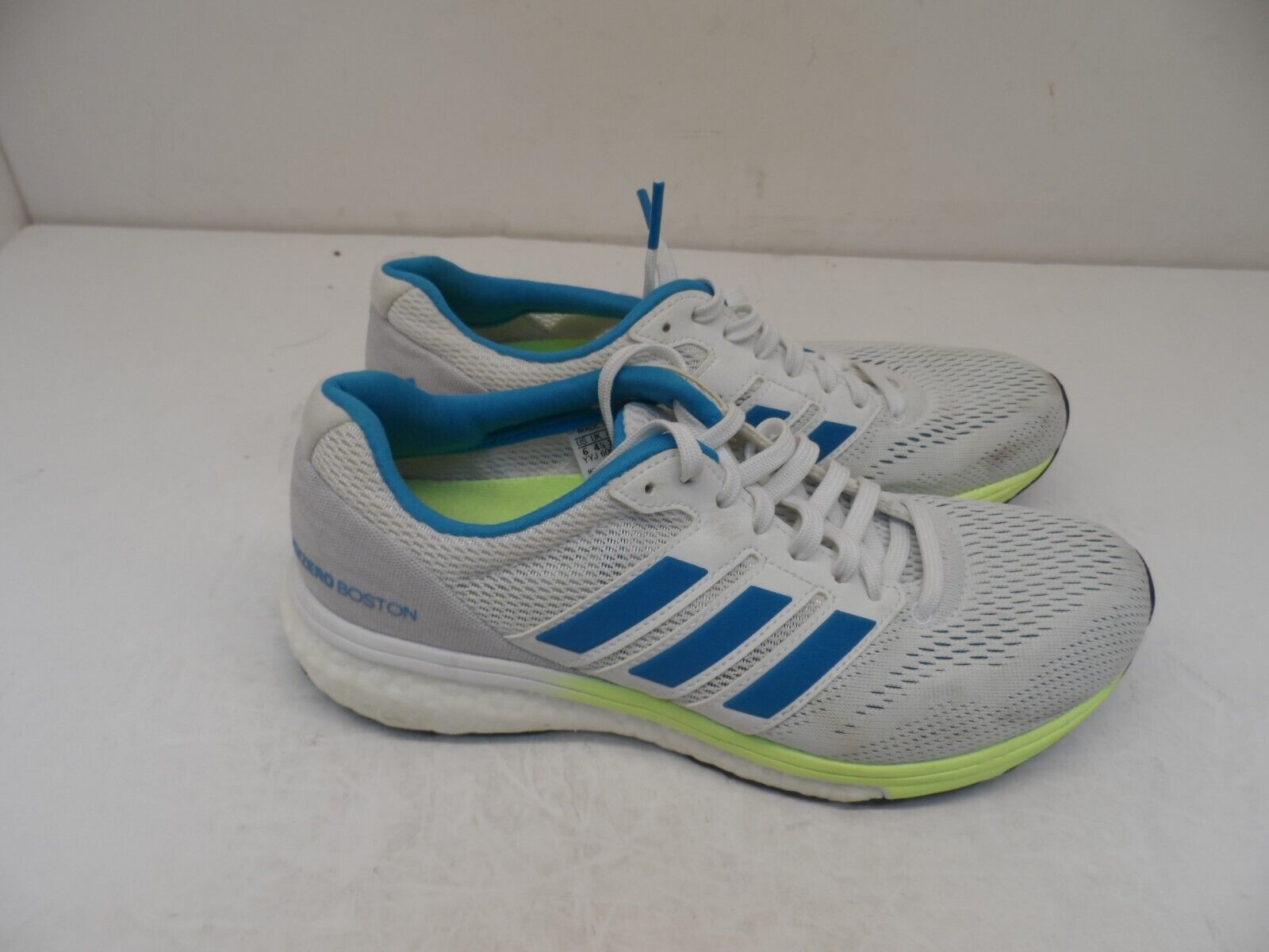 Adidas Women's Adizero Boston 7 Running Shoe White Shock Cyan Blue B37385 6M