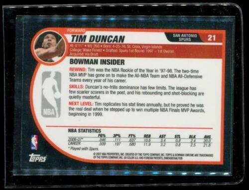 2007 TOPPS BOWMAN CHROME Basketball Trading Card #21 TIM DUNCAN San Antonio Spurs