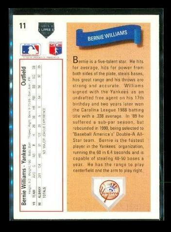 Vintage 1990 UPPER DECK STAR ROOKIE Baseball Card #11 BERNIE WILLIAMS New York Yankees