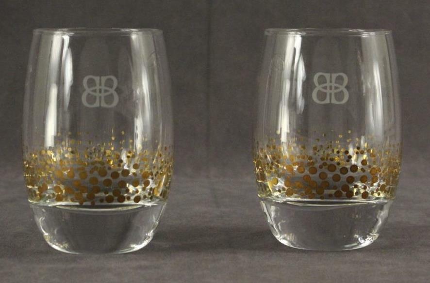 MODERN Advertising Barware 2PC Lot Baileys Irish Cream Gold Confetti Rocks Tumbler Glasses. The measure 4.25" tall. The opening diameter is 2.5" across. Bright gold confetti bubbles. Smoke and pet free. Direct from a local estate, may need a gentle cleaning. 11 oz.
