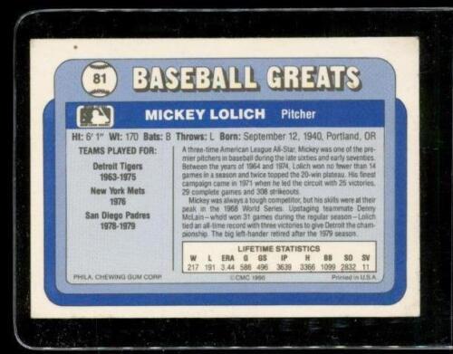 Vintage 1990 PHILA CMC SWELL GREATS Baseball Card #81 MICKEY LOLICH Tigers