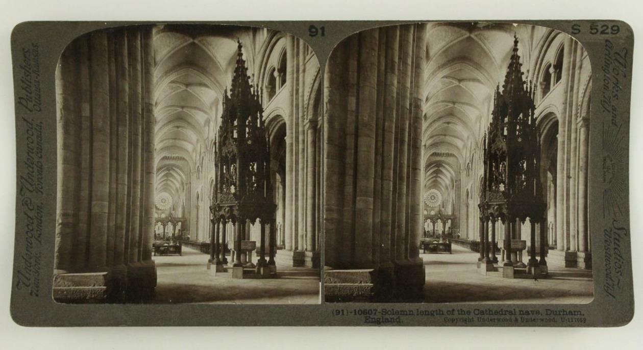 Vintage Stereoscope Card Underwood S529 Gothic Cathedral Nave Durham England