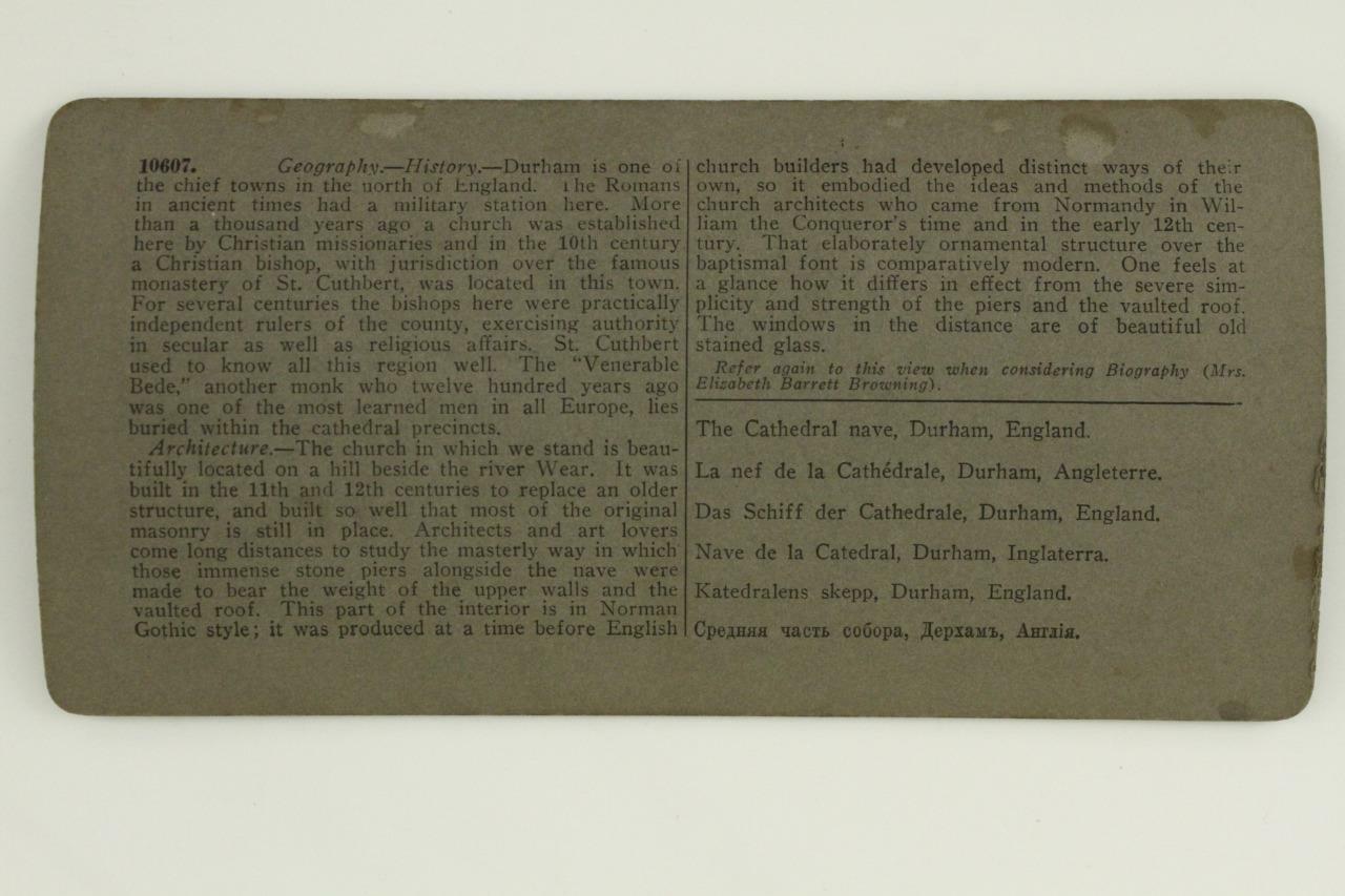 Vintage Stereoscope Card Underwood S529 Gothic Cathedral Nave Durham England. Card is overall in crisp condition but there is a noted curve or bend. There is no smoke or pet odor.