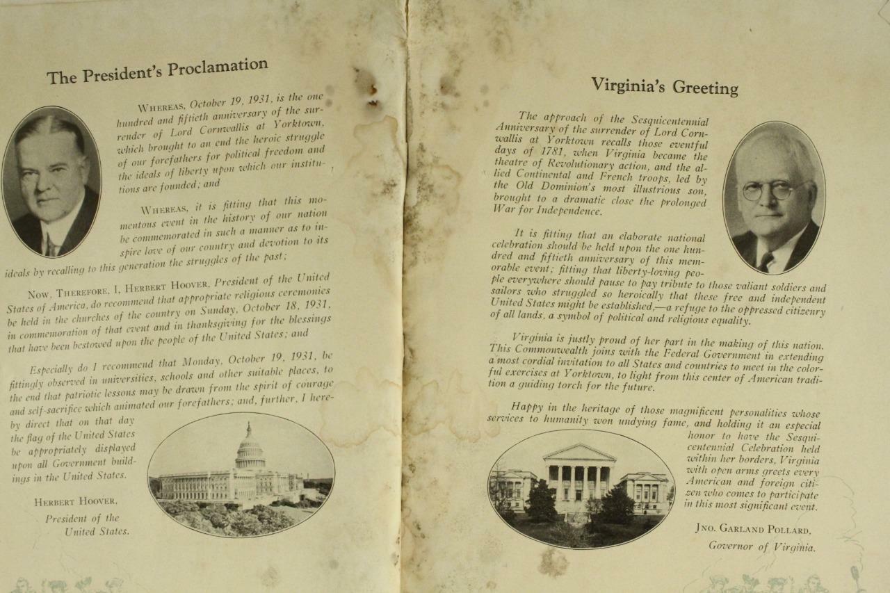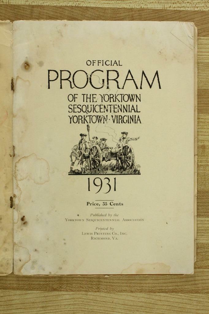 Vintage Paper OFFICIAL PROGRAM Yorktown Sesquicentennial Celebration Oct 1931. Noted browning and edge wear to cover wraps. You get exactly what you see in the photos. Please refer to photos in listing for further information on condition. Smoke-free and pet odor free.