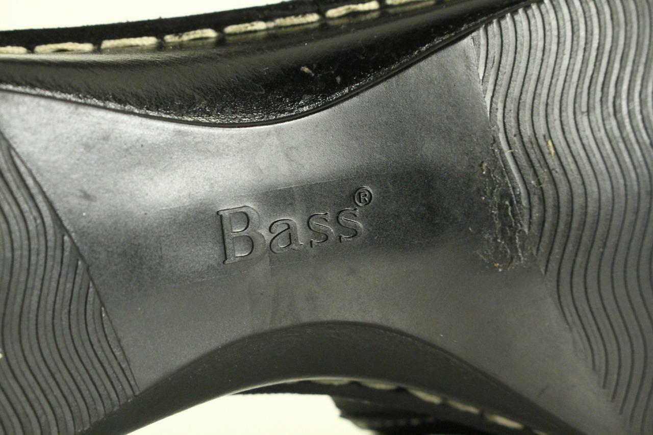 MODERN Ladies Shoes Black Leather Slip On Wedge Sandals BASS Size 10. Chunky and comfortable. No smoke or pet odor.