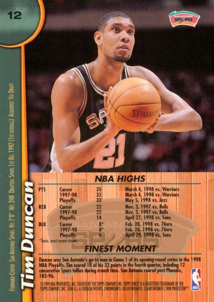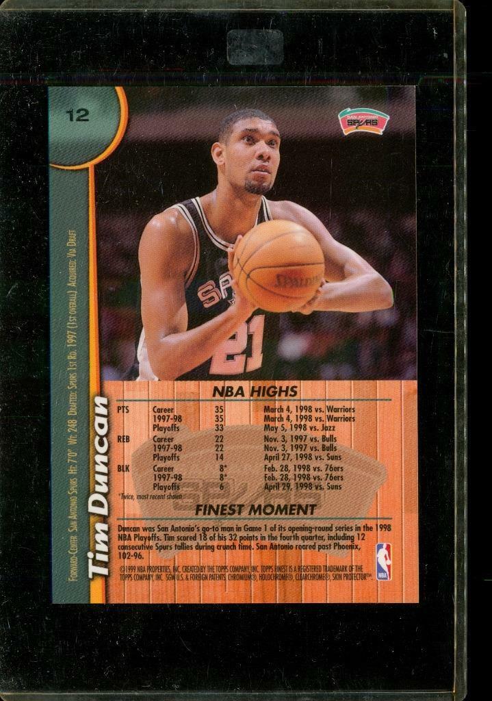 1999 Topps Finest Basketball Card Jumbo TIM DUNCAN #12 San Antonio Spurs. HOF. Crisp, sharp corners. Refractor. Protective film still in place.