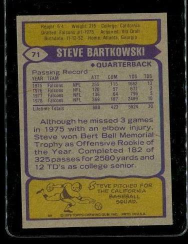 Vintage 1979 TOPPS TEAM LEADERS Football Card #71 STEVE BARTOWSKI Atlanta Falcons