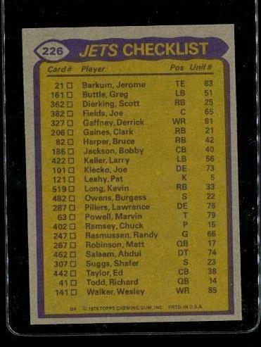 Vintage 1979 TOPPS LDRS Football Card #226 LONG WALKER JACKSON OWENS KLECKO Jets