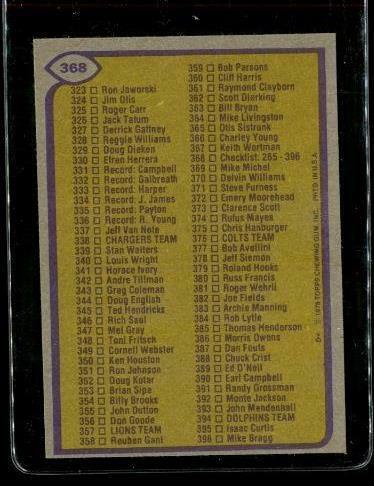 Vintage 1979 TOPPS Football Trading Card #368 CHECKLIST 265-396