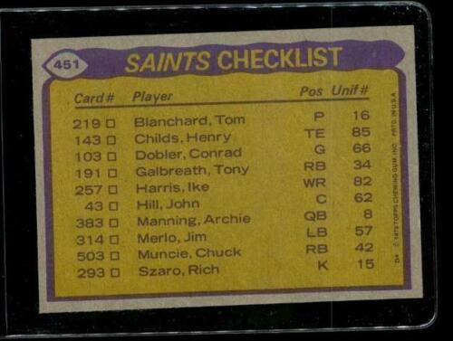 Vintage 1979 TOPPS LEADERS Football Card #451 TEAM CHECKLIST New Orleans Saints