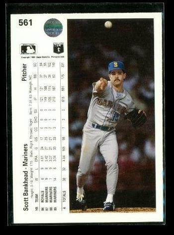 Vintage 1990 UPPER DECK Baseball Trading Card #561 SCOTT BANKHEAD Mariners