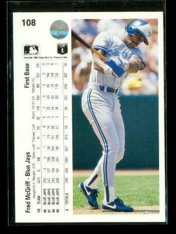 Vintage 1990 UPPER DECK Baseball Trading Card #108 FRED MCGRIFF Blue Jays