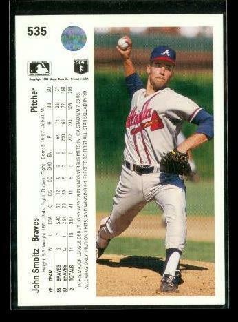 Vintage 1990 UPPER DECK Baseball Trading Card #535 JOHN SMOLTZ Atlanta Braves
