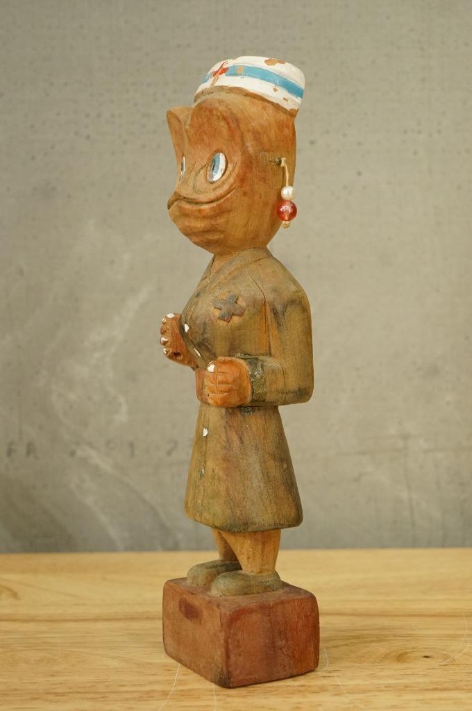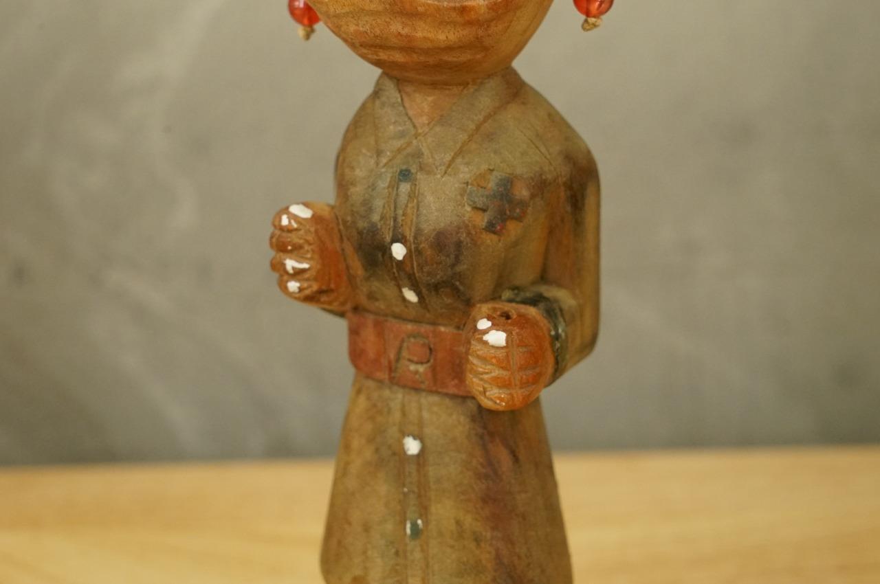 Indo Pacific WWII 1941 Folk Art Carved Wood Figurine Malagan New Ireland Nurse. Remains of original paint. 9.75" tall. She is wearing a US style military uniform. Smoke and pet odor free. SIgned on the bottom, but unable to read. History info from the client's family.