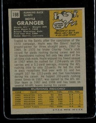 Vintage 1971 TOPPS TCG Football Trading Card #198 HOYLE GRANGER New Orleans Saints