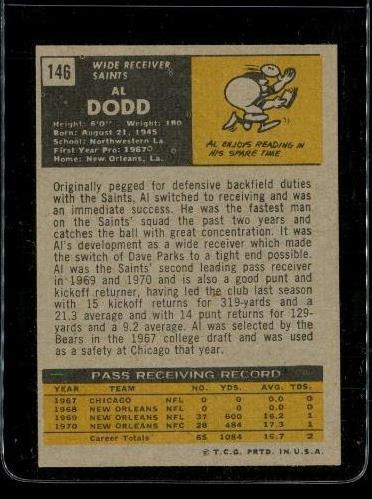 Vintage 1971 TOPPS TCG Football Trading Card #146 AL DODD New Orleans Saints