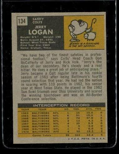 Vintage 1971 TOPPS TCG Football Trading Card #134 JERRY LOGAN Indianapolis Colts