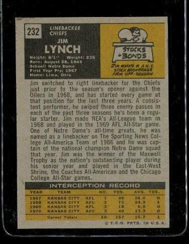Vintage 1971 TOPPS TCG Football Trading Card #232 JIM LYNCH Kansas City Chiefs