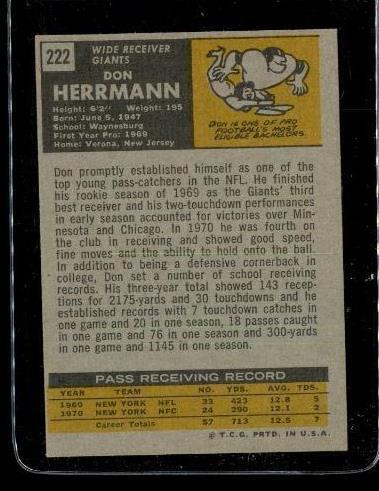 Vintage 1971 TOPPS TCG Football Trading Card #222 DON HERRMANN New York Giants