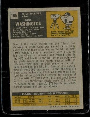 Vintage 1971 TOPPS TCG ALL STAR Football Trading Card #165 GENE WASHINGTON 49ers
