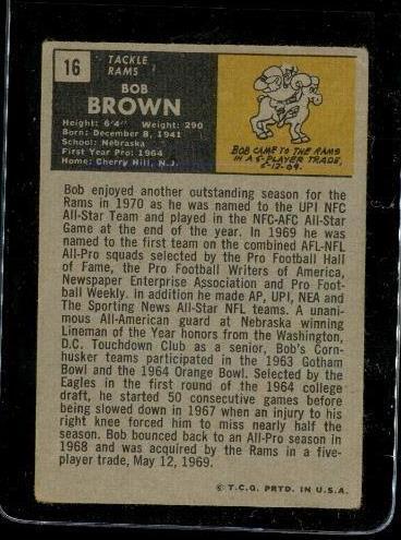 Vintage 1971 TOPPS TCG Football Trading Card #16 BOB BROWN Los Angeles Rams