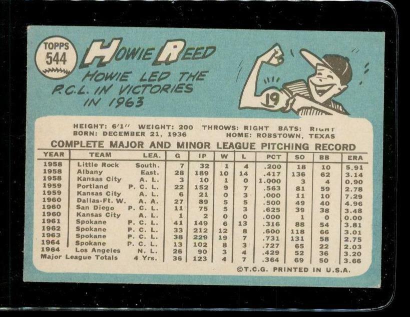 Vintage 1965 Topps BASEBALL Trading Card #544 HOWIE REED Dodgers Pitcher