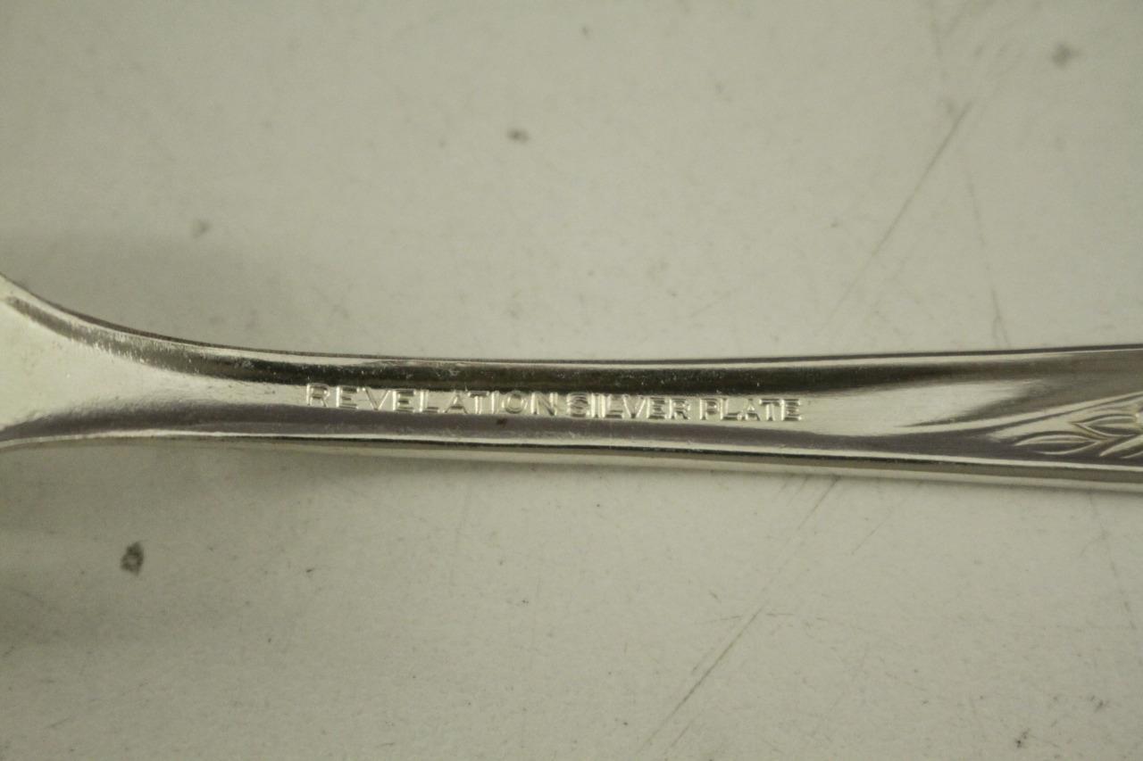 Vintage 15PC Lot Flatware International REVELATION Pattern II 1953 Rose Scroll. Includes (2) teaspoons, one sugar spoon, (5) teaspoons, one butter knife, (6) dinner forks 7-1/8" long. You get the exact pieces shown in the photos. Direct from a local estate.