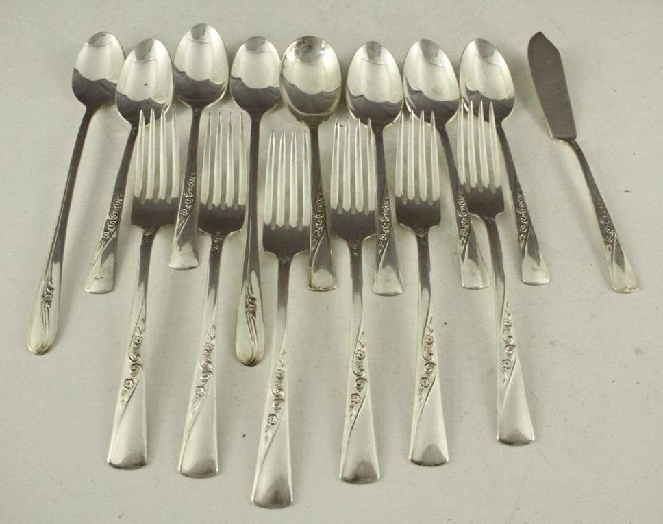 Vintage 15PC Lot Flatware International REVELATION Pattern II 1953 Rose & Scroll
