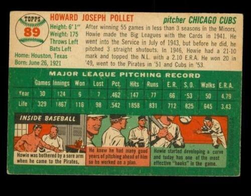 Vintage 1954 Baseball Trading Card TOPPS #89 HOWIE POLLET Chicago Cubs Pitcher