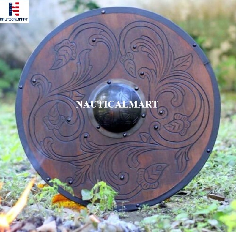 The Shield Would Be Perfect For Renaissance Festival In Your Area, Some Backyard Brawling Between Friends, Larp Events Or Historical Reenactments. The Shield Features A Handle On The Reverse. The Face Of The Shield Features Viking Pattern.