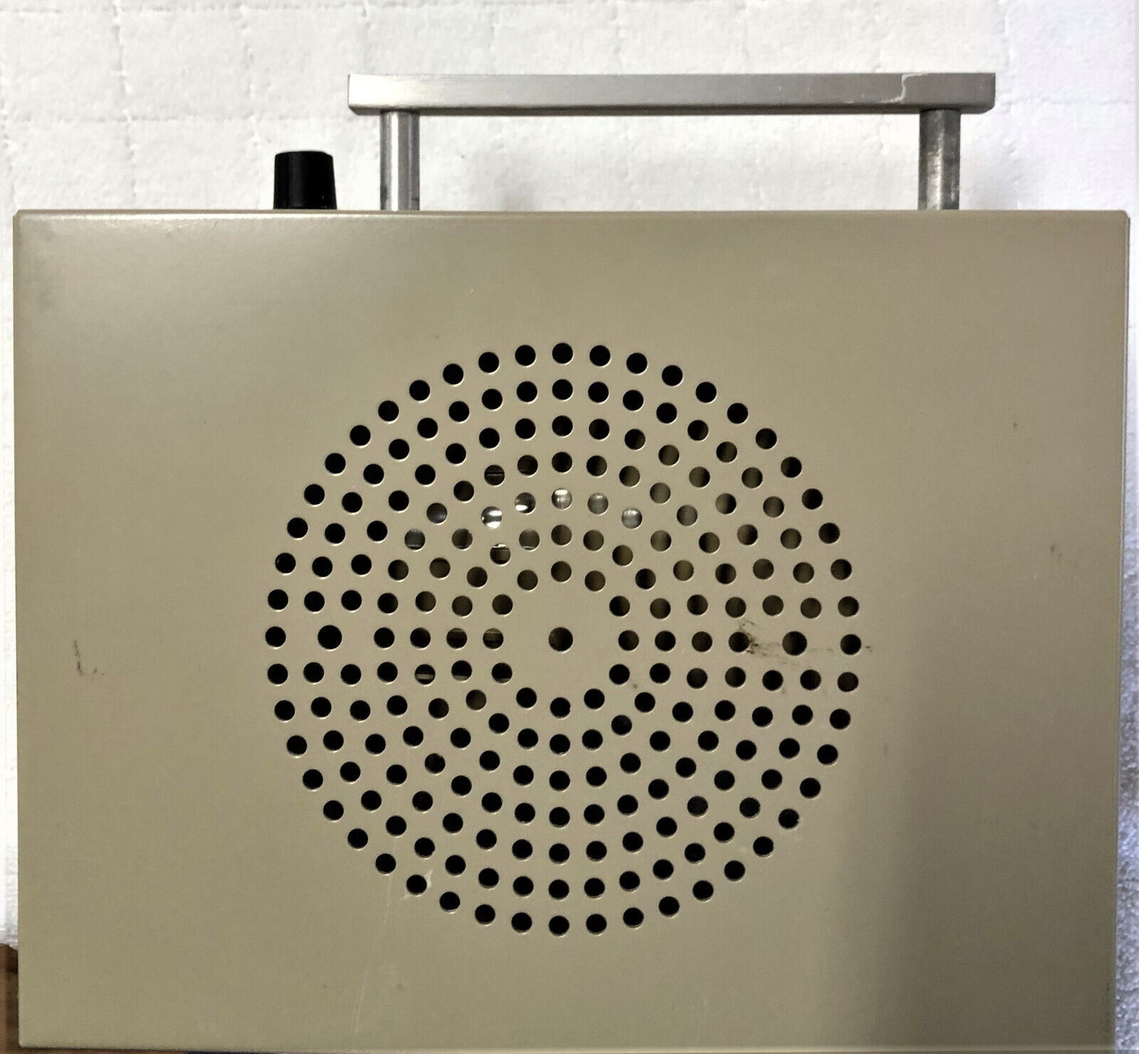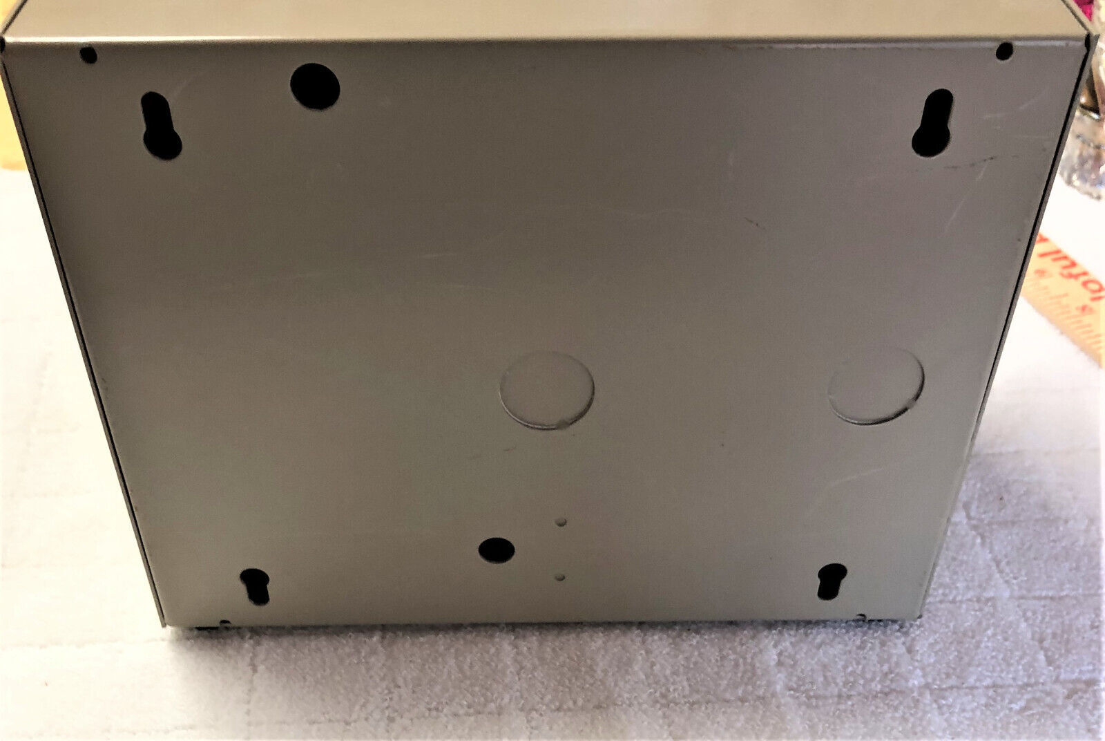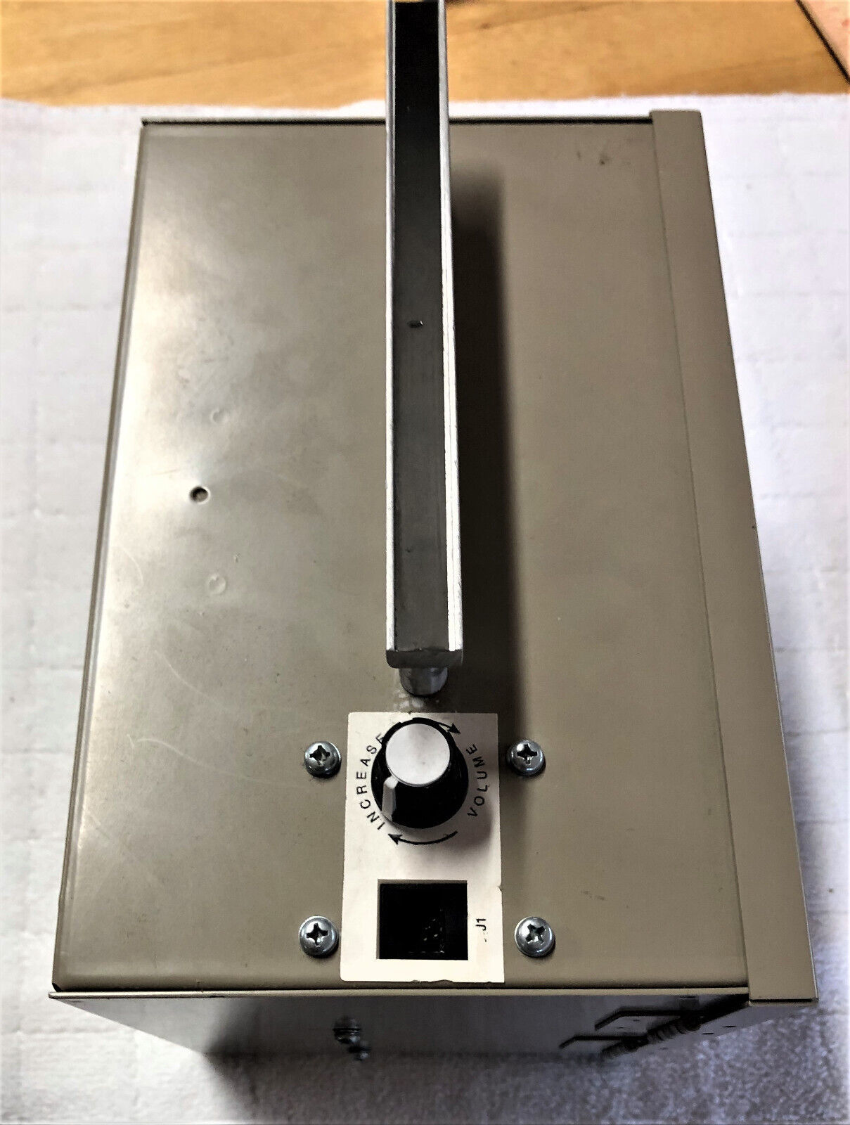 Vintage Honeywell external sounder with Ademco 719 siren in a clean sturdy enclosure with handle and volume control and there is no guarantee on the battery. Enclosure measures 8 1/4" x 6 5/8" x 5 1/4"