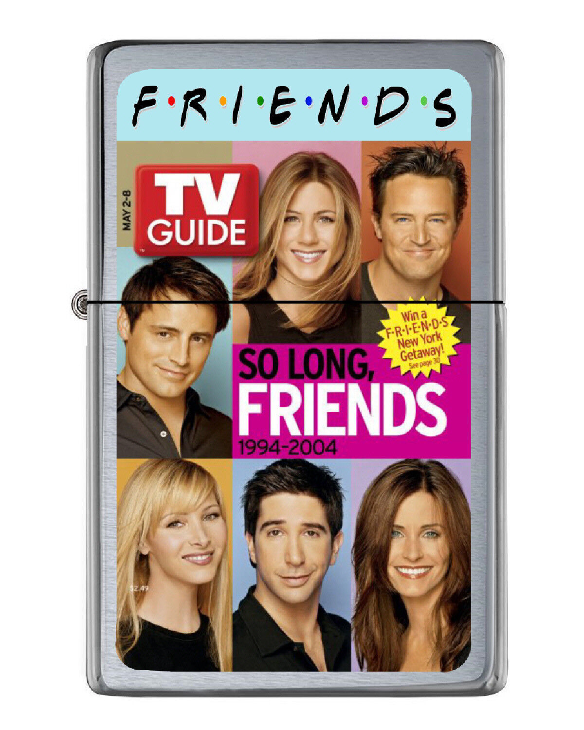 FRIENDS TV Guide Show Flip Top Lighter Brushed Chrome with Vinyl Image.