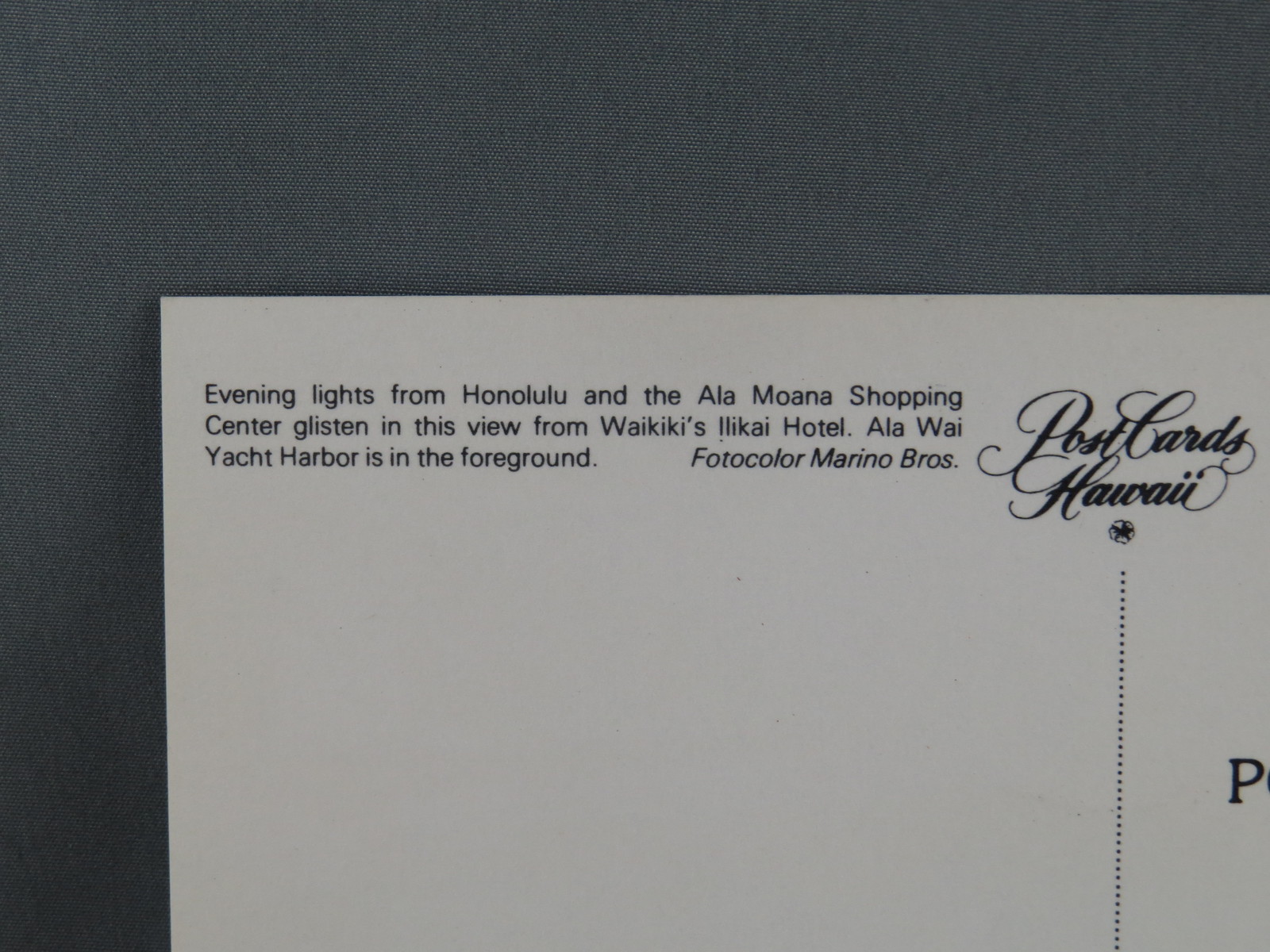 Up for sale is a vintage postcard. It features an image of the Ala Wai Yacht Harbour at night. What a great addition to any colleciton.