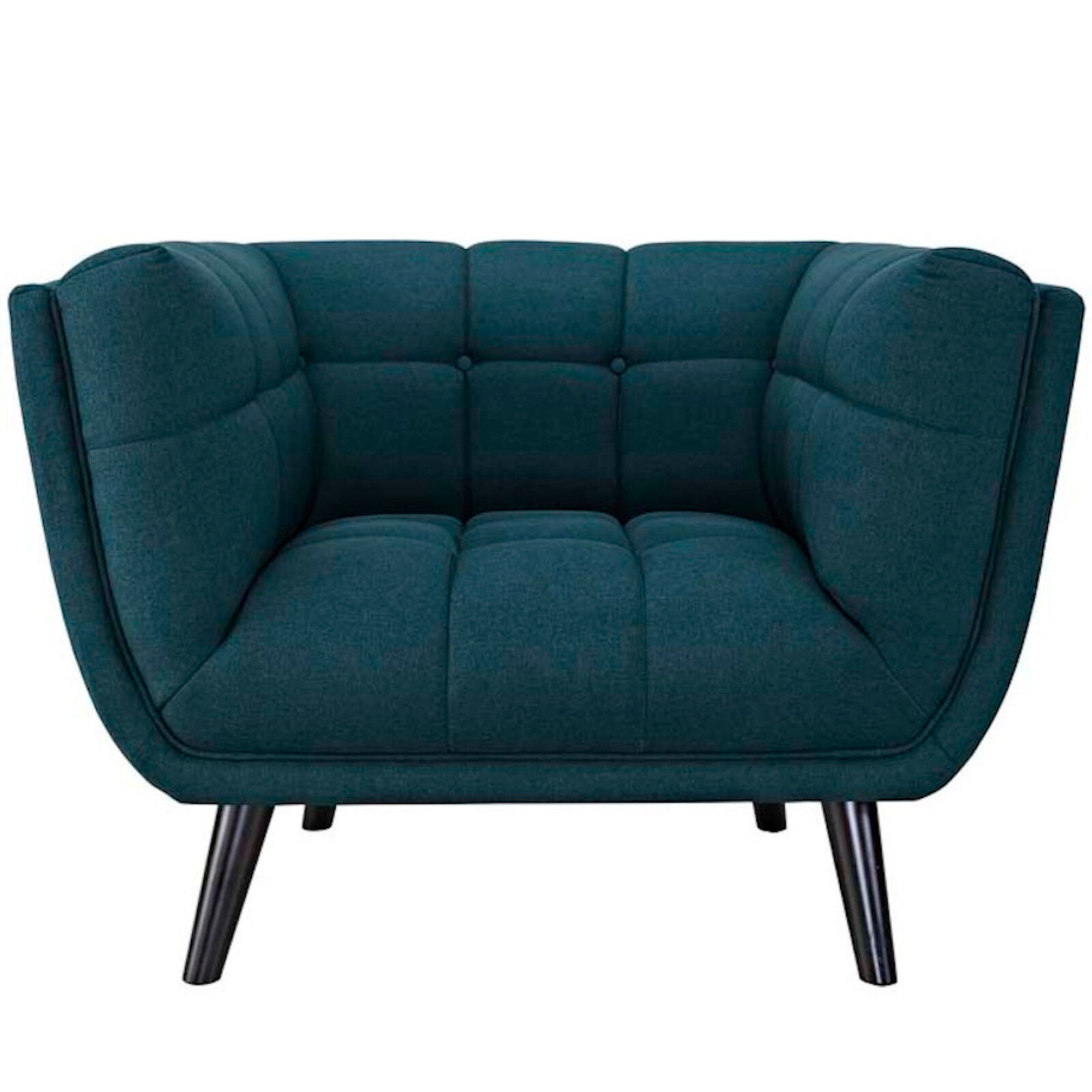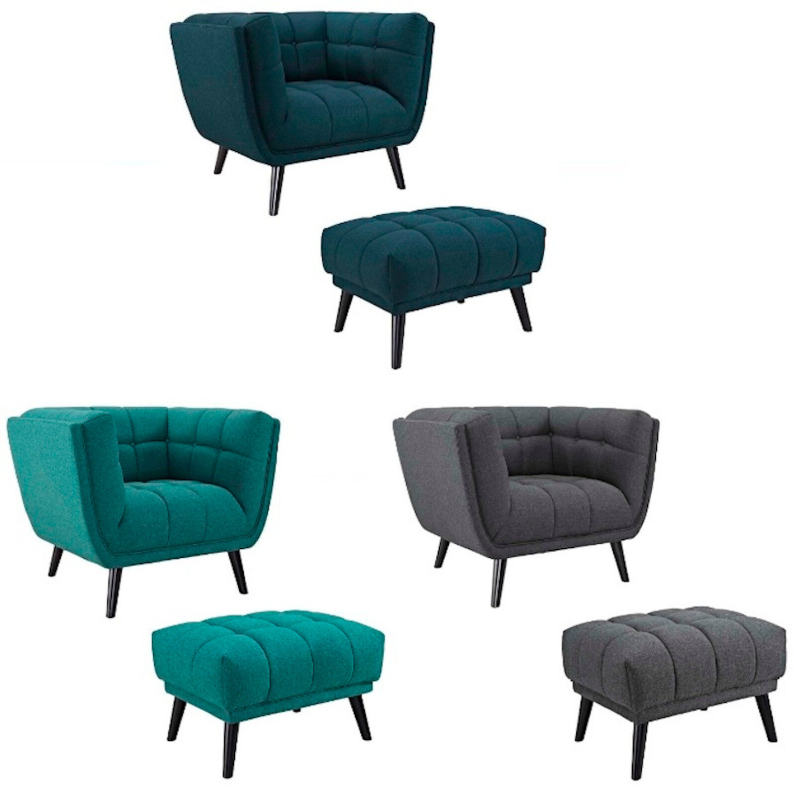Mid-Century Lounge Arm Chair & Ottoman Tufted Fabric Ottoman Gray, Teal, Blue