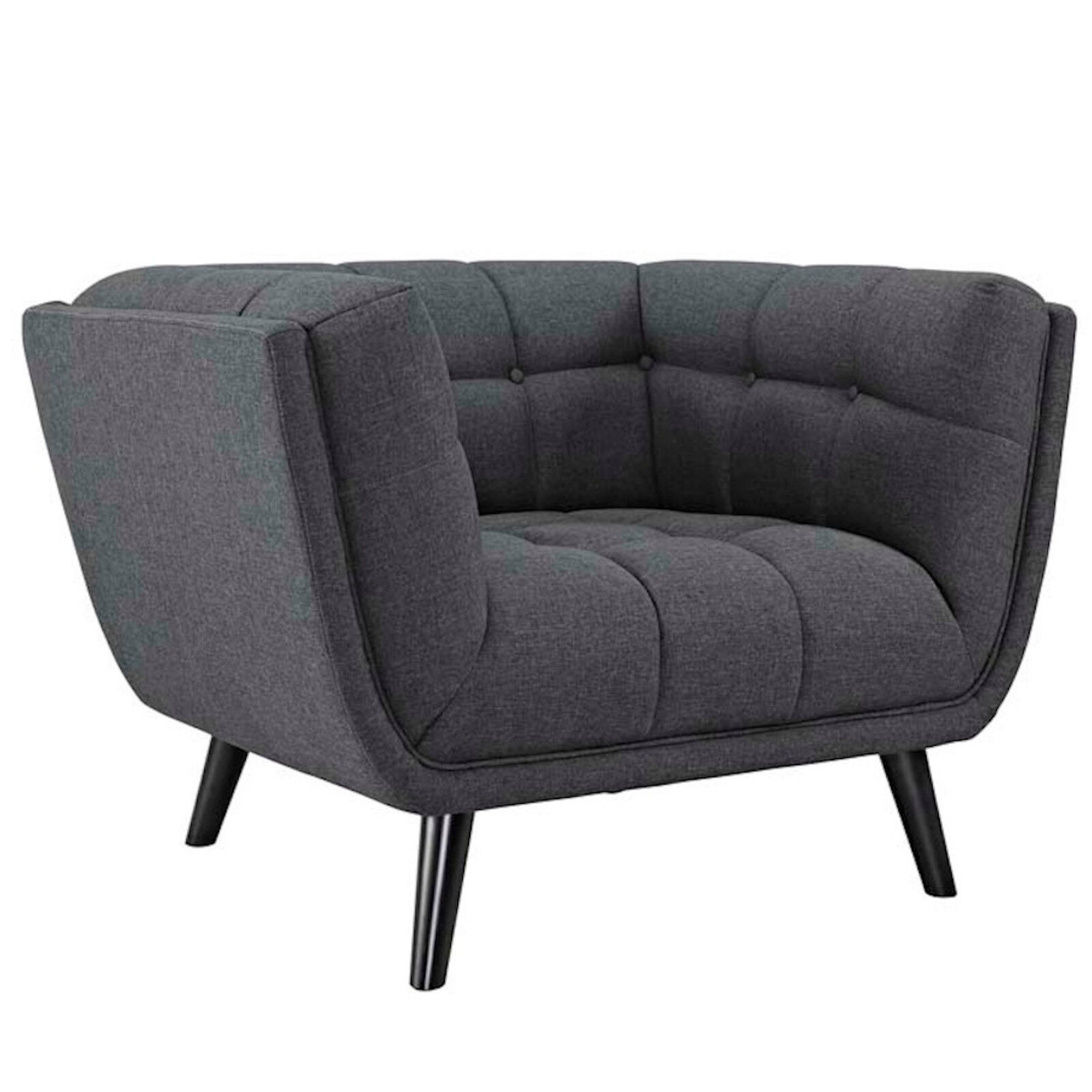 MID-CENTURY CHAIR, WITH OR W/O OTTOMAN, UPHOLSTERED BUTTON-TUFTED FABRIC: GRAY, TEAL OR BLUE