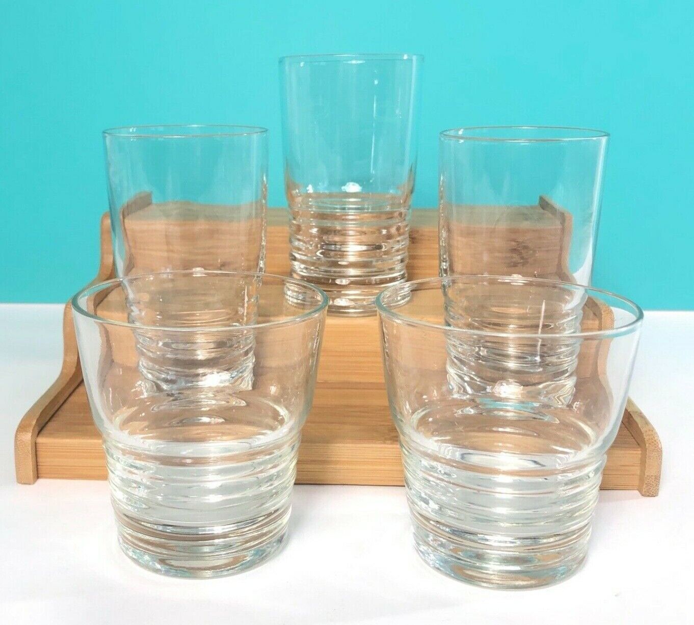 Vintage Ribbed Glassware On the Rocks & Tumblers 50s 60s Barware Set Of 5