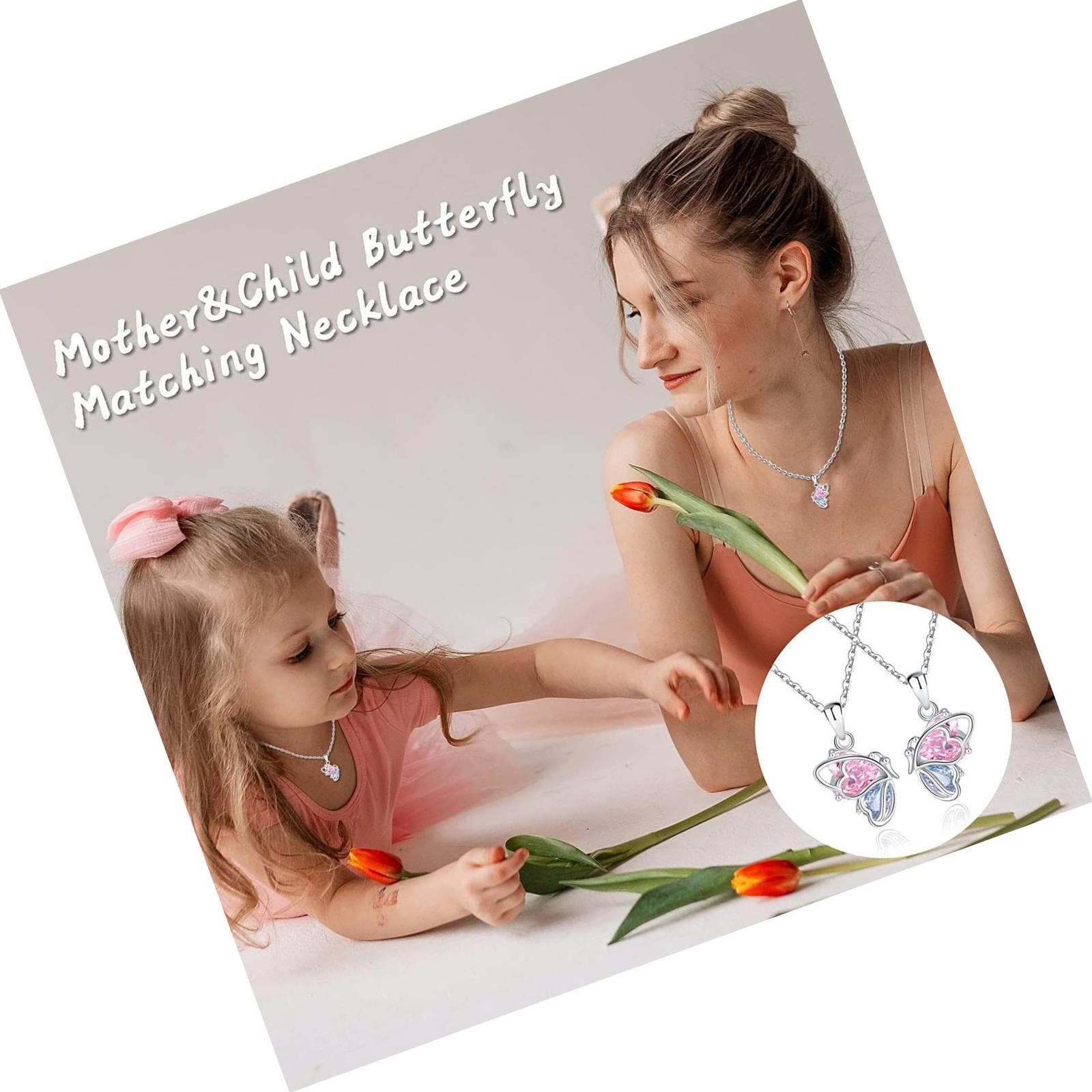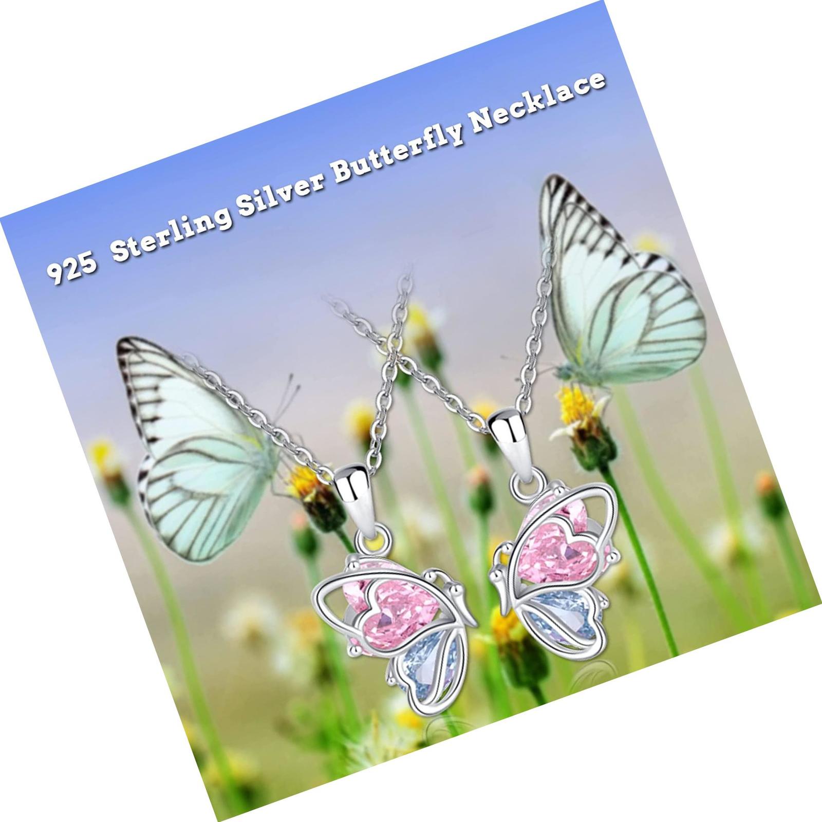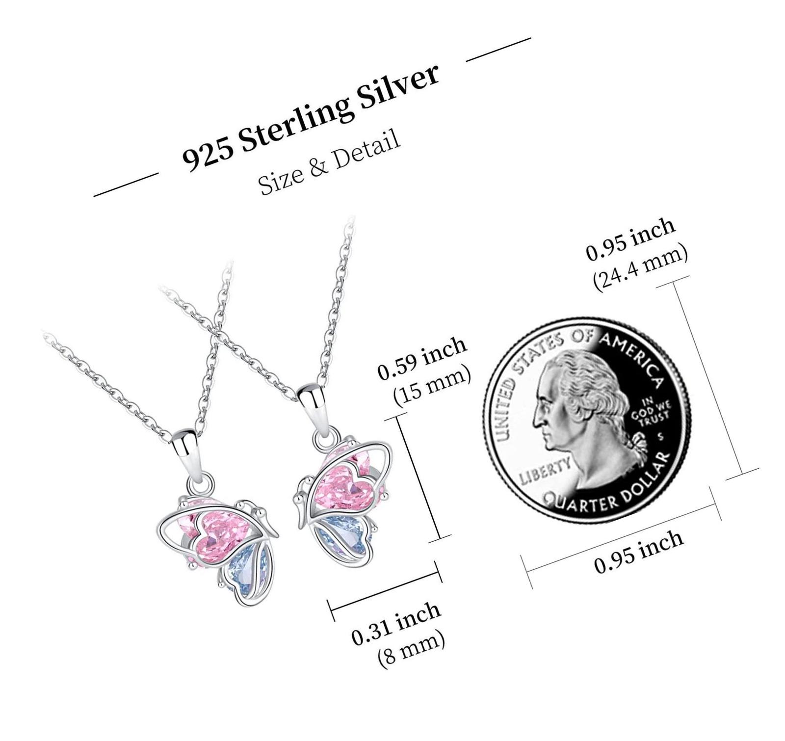 925 Sterling Silver Butterfly Matching Necklaces set 2 Mom 2