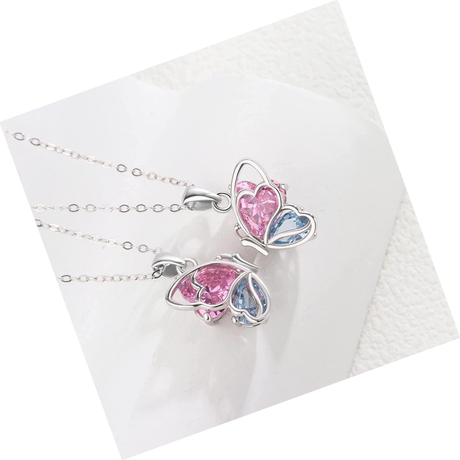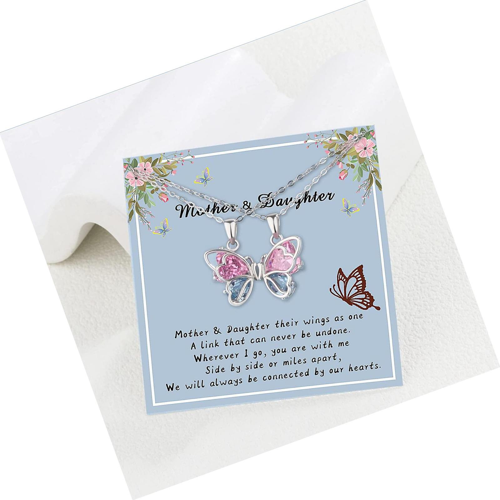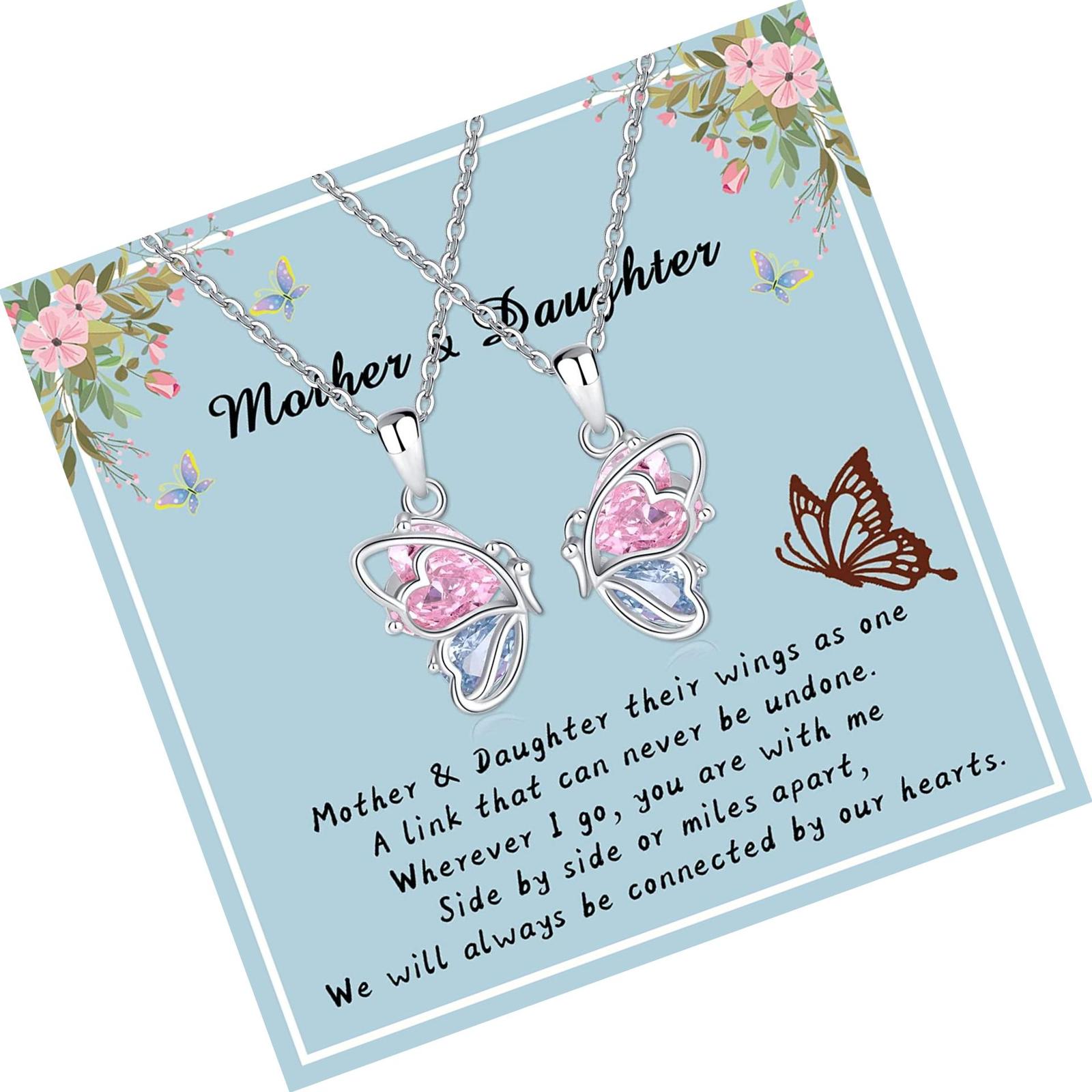 925 Sterling Silver Butterfly Matching Necklaces set 2 Mom 2