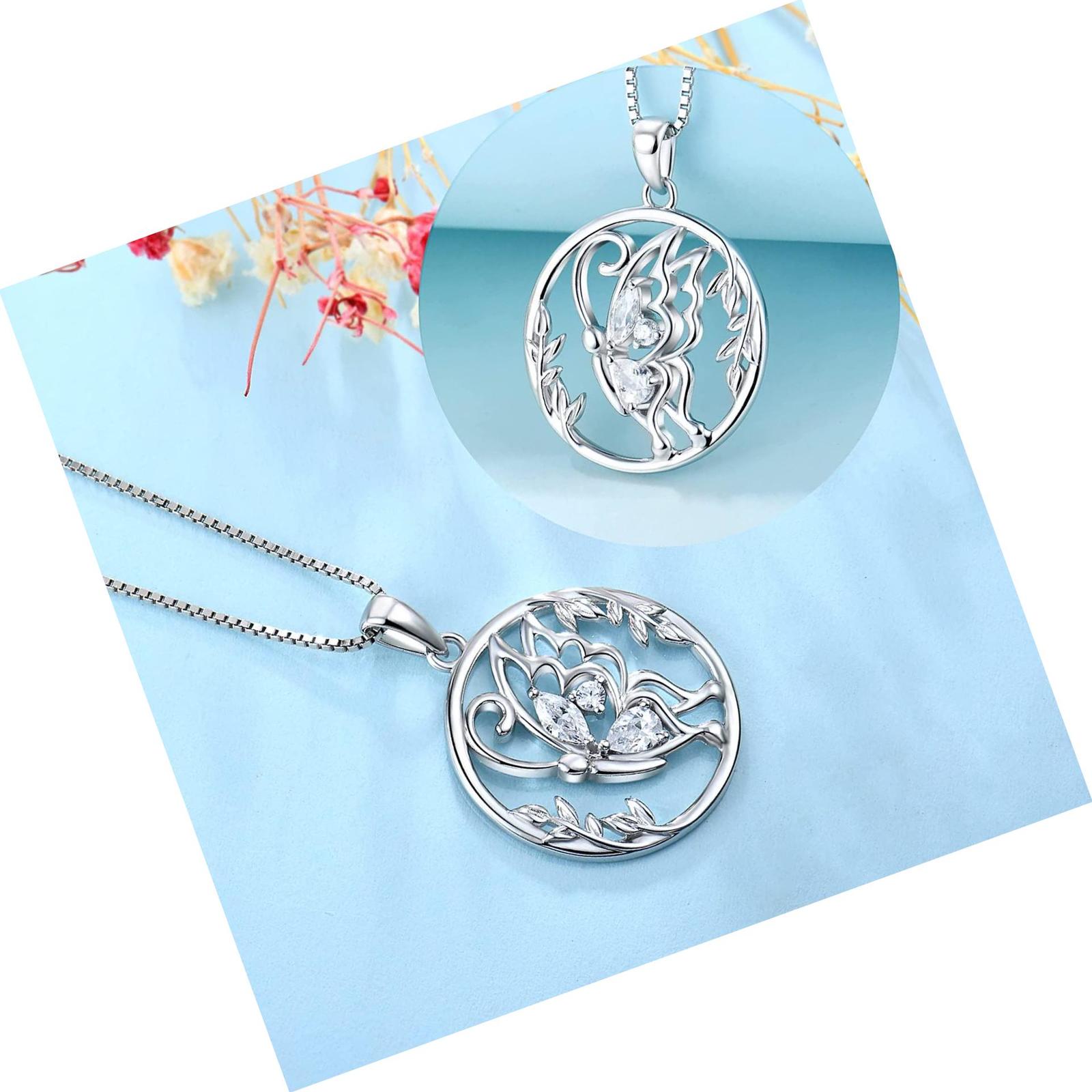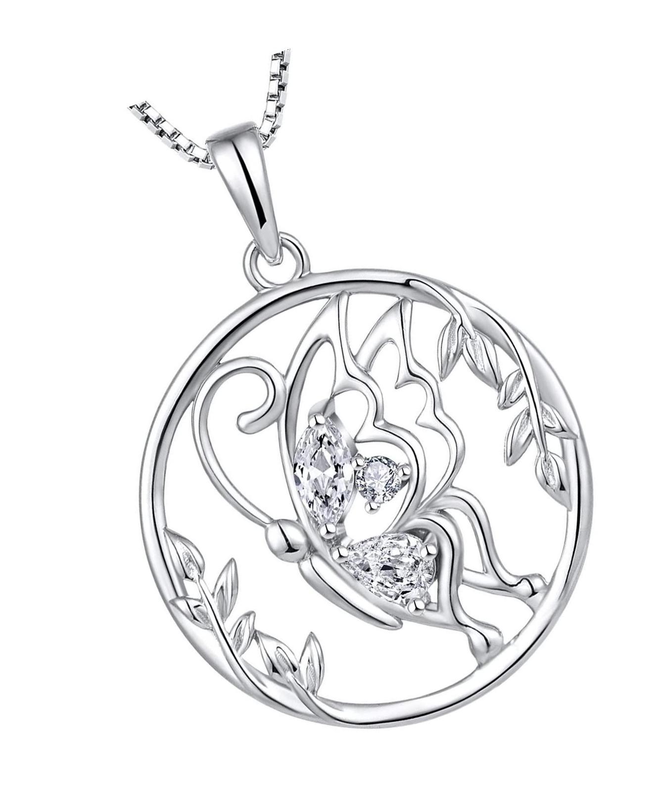 Butterfly Necklace 925 Sterling Silver Leaf Pendant Round