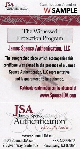 We work with the most reputable suppliers in the industry who have direct contracts with athletes celebrities. Most items are acquired via private paid autograph signings with the athletes/celebrities to ensure the signatures are the real thing. We work with some of the most advanced authentication companies in the industry today including PSA/DNA, James Spence Authentication (JSA), Beckett Authentication Services (BAS), Fanatics Authentic, Upper Deck, Steiner, Tristar and much more. From time to time, we have the same products, but authentication from what is described and pictured in this listing may change on the particular in stock item. So you are made aware, we may send the same item, but the authentication may differentiate where you will receive authentication from any of the other companies mentioned above in replacement and by purchasing this item from us, you accept this potential change at any time. The companies mentioned above are considered the gold standard of authentication in the autograph industry, and one is not deemed better than the other but all the same quality of name.
