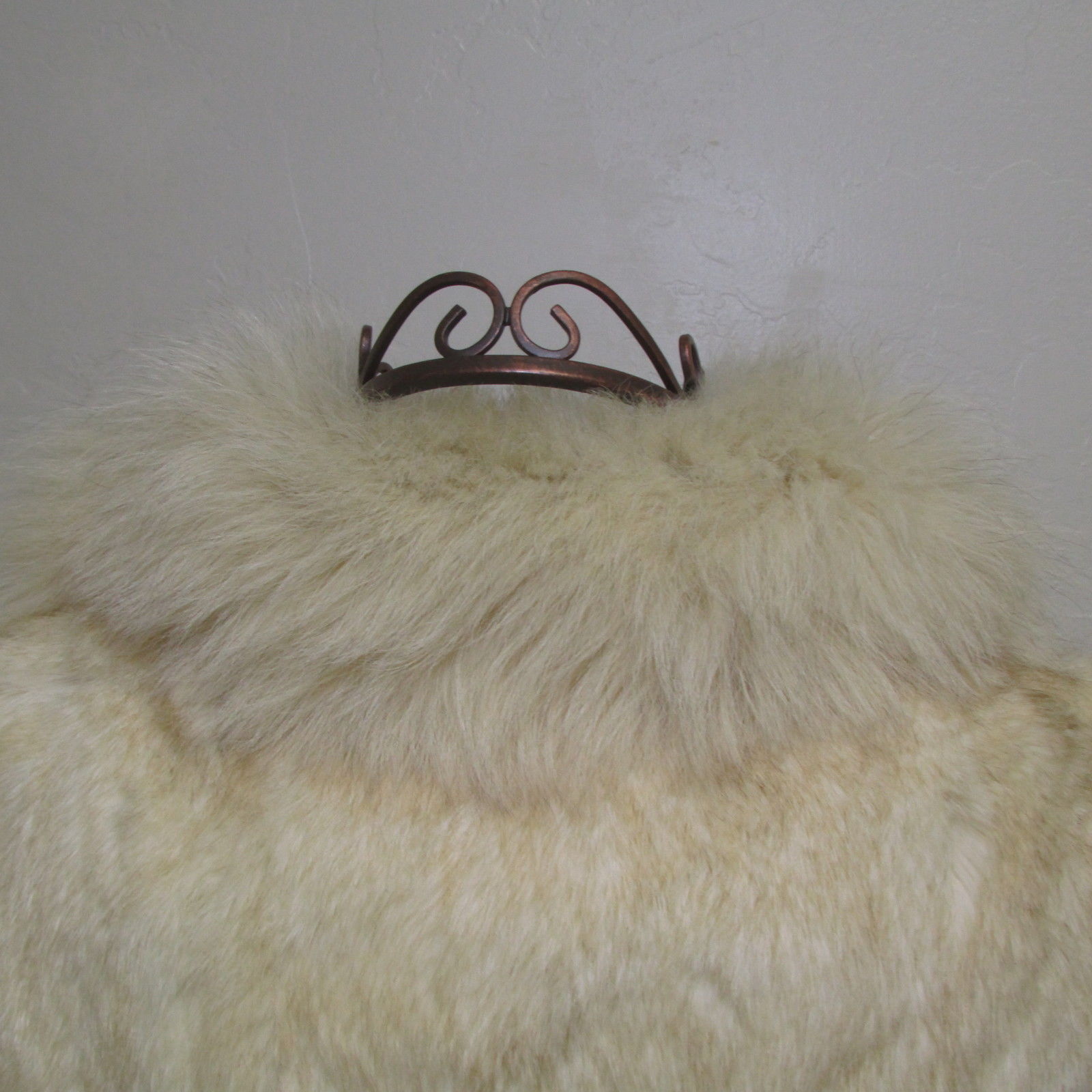Amazing Vintage Rabbit Fur Jacket in a creamy blonde gorgeous shade, so soft and plush, features 3 snap furrier hook and eye closures that keep the chill at bay, 2 exterior creamy silk lined concealed slip pockets, fluffy fur backed collar, cream lined silk interior (one small stain on interior lining-see photo) with any vintage garment, professional cleaning may be required upon receipt.