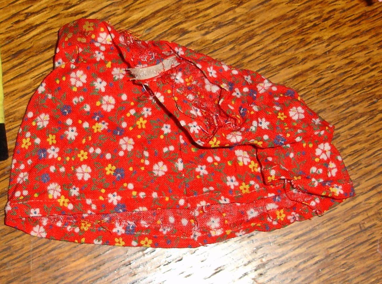 The cotton country print skirt is about the same size as the Oldest Always Sisters clothes but a little bigger. Excellent condition, wrinkled near mint. 3 inch long wast diameter 3 inches, skirt opens. vellco closes needs renforcment.