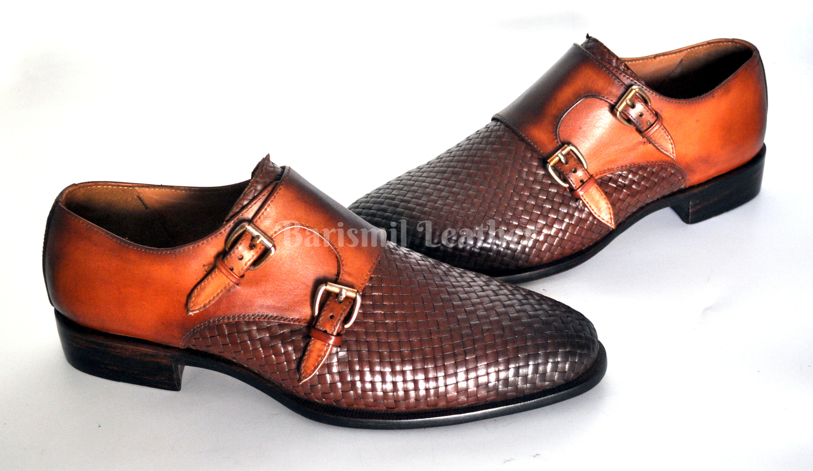 Double Monk Brown patina Leather Handmade Shoes Leather Dress Shoes for Men