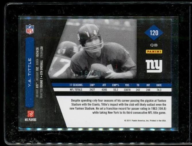 2011 PANINI LTD LEGEND SPOTLIGHT Holo Football Card #120 YA TITTLE Giants 18/50