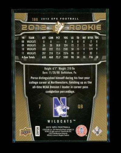2012 UPPER DECK SPX ROOKIE Football Card #188 DAN PERSA Northwestern University Wildcats Limited Edition 654/750