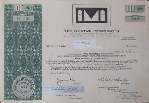 Iron Mountain Inc. Stock Certificate, 1972, and 48 similar items