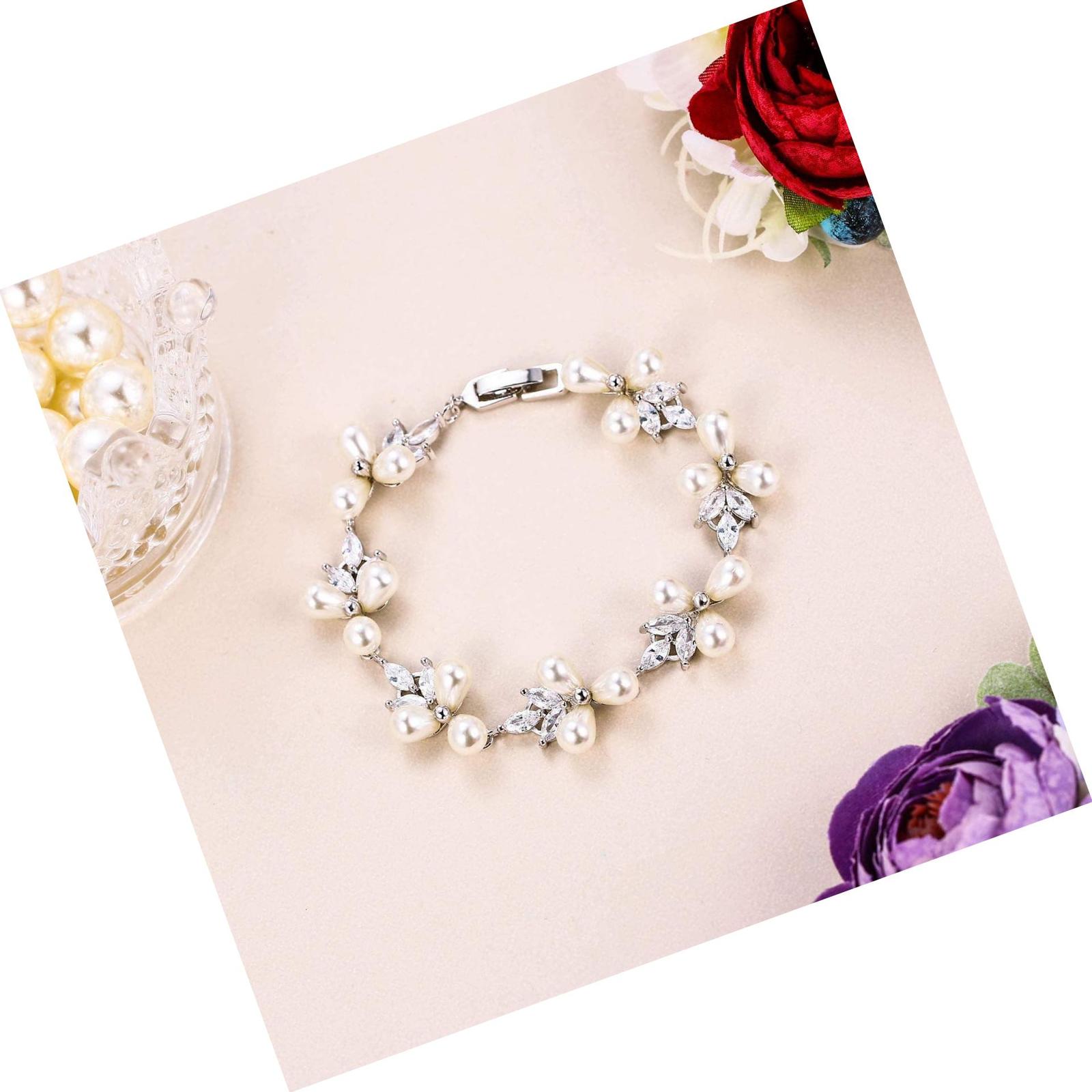 Women's CZ Simulated Pearl Bridal Wedding and 22 similar items