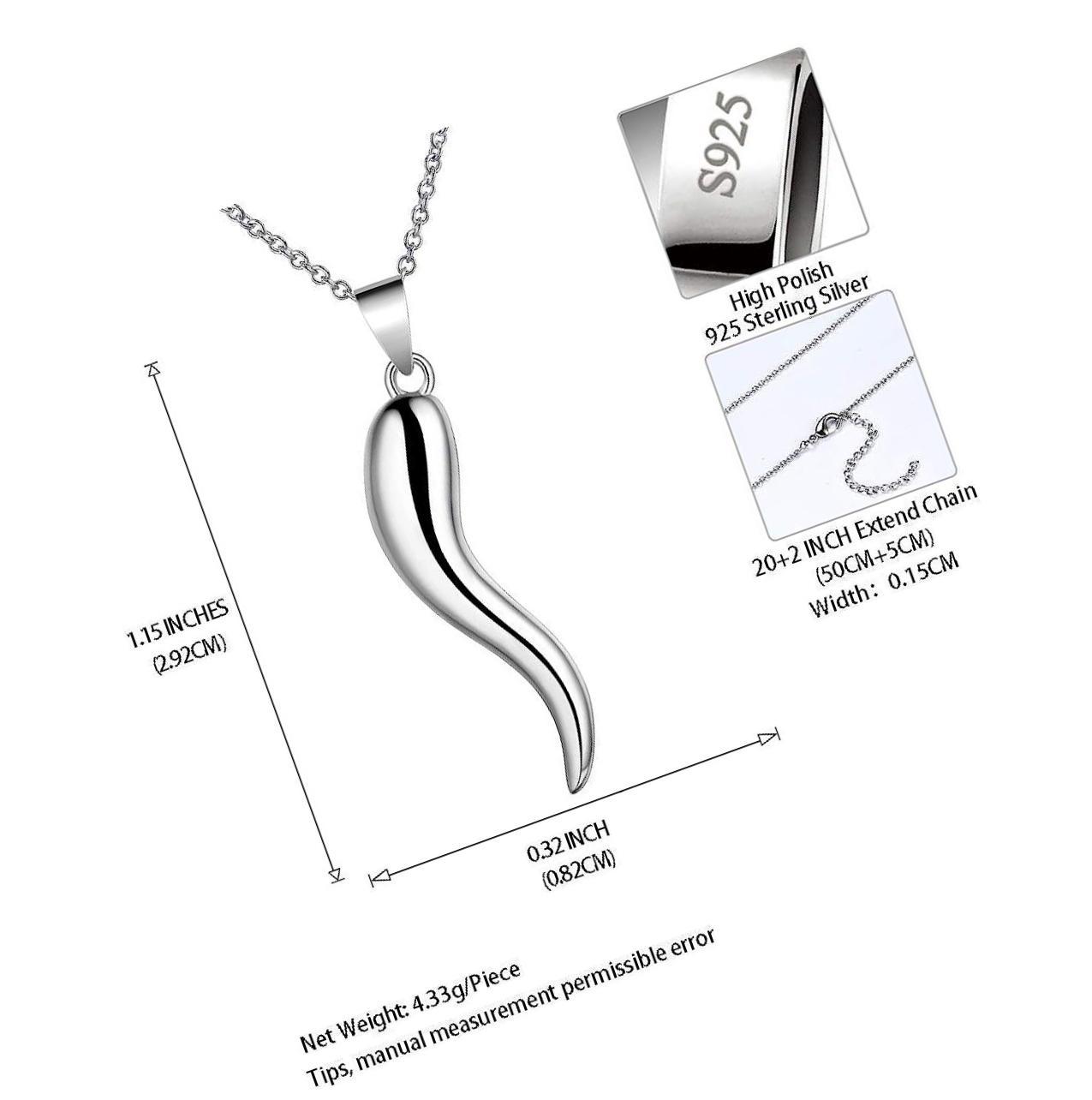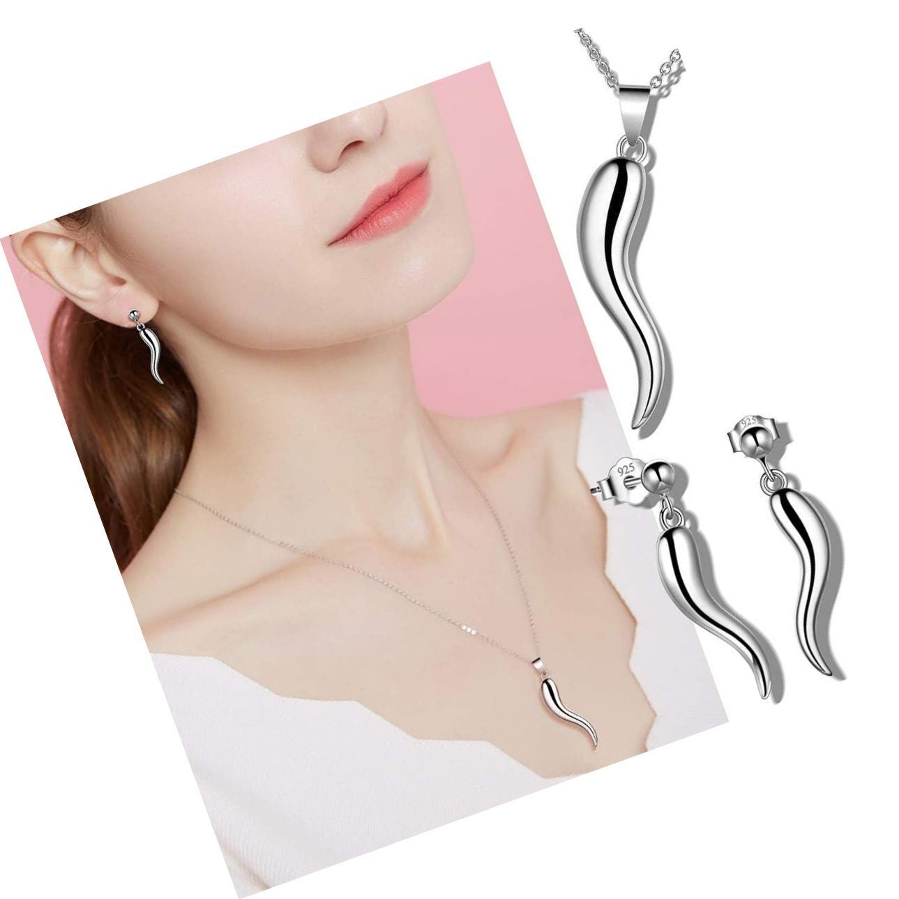 Besilver 925 Sterling Silver Lucky Italian Horn Pendant Set